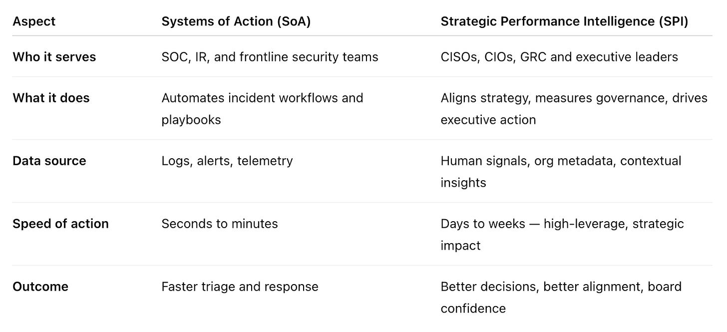SoA platforms like ReliaQuest, Splunk, and Palo Alto’s Cortex solve a very different problem: how to act quickly in the face of operational noise.